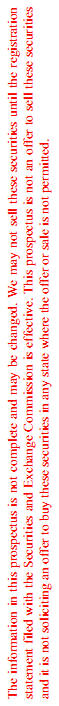 You should rely only on the information contained in or incorporated by reference in this prospectus and any applicable prospectus supplement. We have not authorized anyone to provide you with different or additional information. If anyone provides you with different or inconsistent information, you should not rely on it. The information contained in this prospectus is accurate only as of the date of this prospectus, regardless of the time of delivery of this prospectus or any sale of securities described in this prospectus. This prospectus is not an offer to sell these securities and it is not soliciting an offer to buy these securities in any jurisdiction where the offer or sale is not permitted. You should assume that the information appearing in this prospectus or any prospectus supplement, as well as information we have previously filed with the SEC and incorporated by reference, is accurate as of the date on the front of those documents only. Our business, financial condition, results of operations and prospects may have changed since those dates. This prospectus may not be used to consummate a sale of our securities unless it is accompanied by a prospectus supplement.