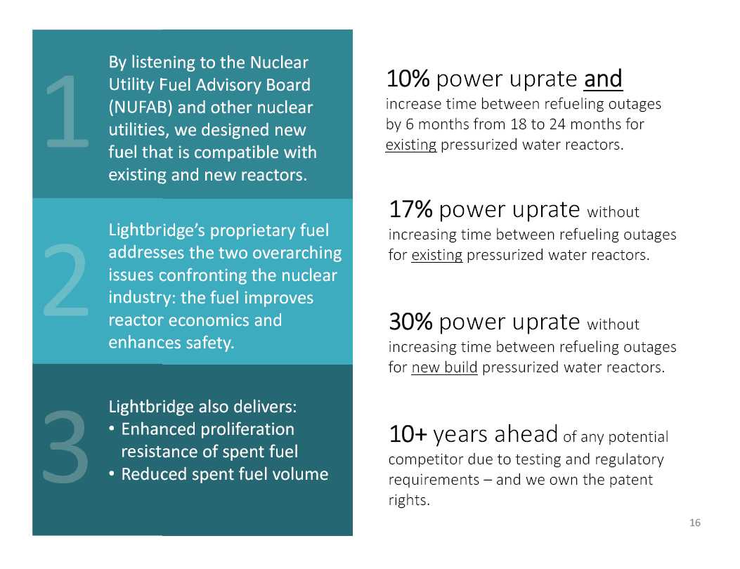 | | Lightbridge is in discussions with additional nuclear fuel fabricating companies. |