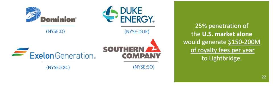 In 2015, utilities representing 50% of the U.S. nuclear market requested the Nuclear Regulatory Commission (NRC) to prepare to review Lightbridges patented fuel design in advance of an expected application in 2017 to use Lightbridge’s fuel in a US commercial reactor.