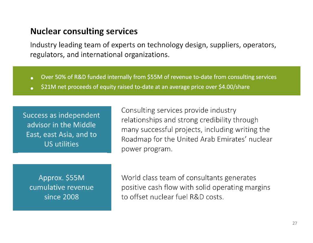 With the exception of historical matters, the matters discussed in this presentation are forward -looking statements within the meaning of the Private Securities Litigation Reform Act of 1995, including statements regarding the Companys competitive position, the timing of demonstration testing and commercial production, future demand for nuclear energy, the Companys product and service offerings, and the expected market for and revenue from the Companys product and service offerings.
