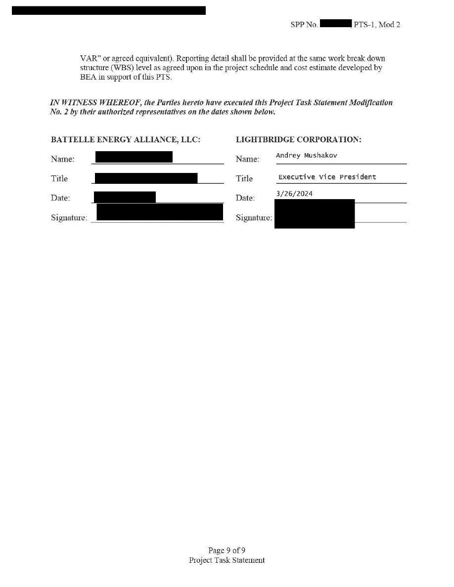 MODIFICATION NO. 2 TO THE PROJECT TASK STATEMENT